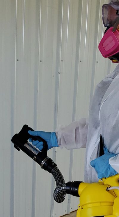 Cleaning and disinfecting our equipment before entering your home or business. Equipping our team with all proper PPE (goggles, masks, respirators caps, etc.) to use as needed.
